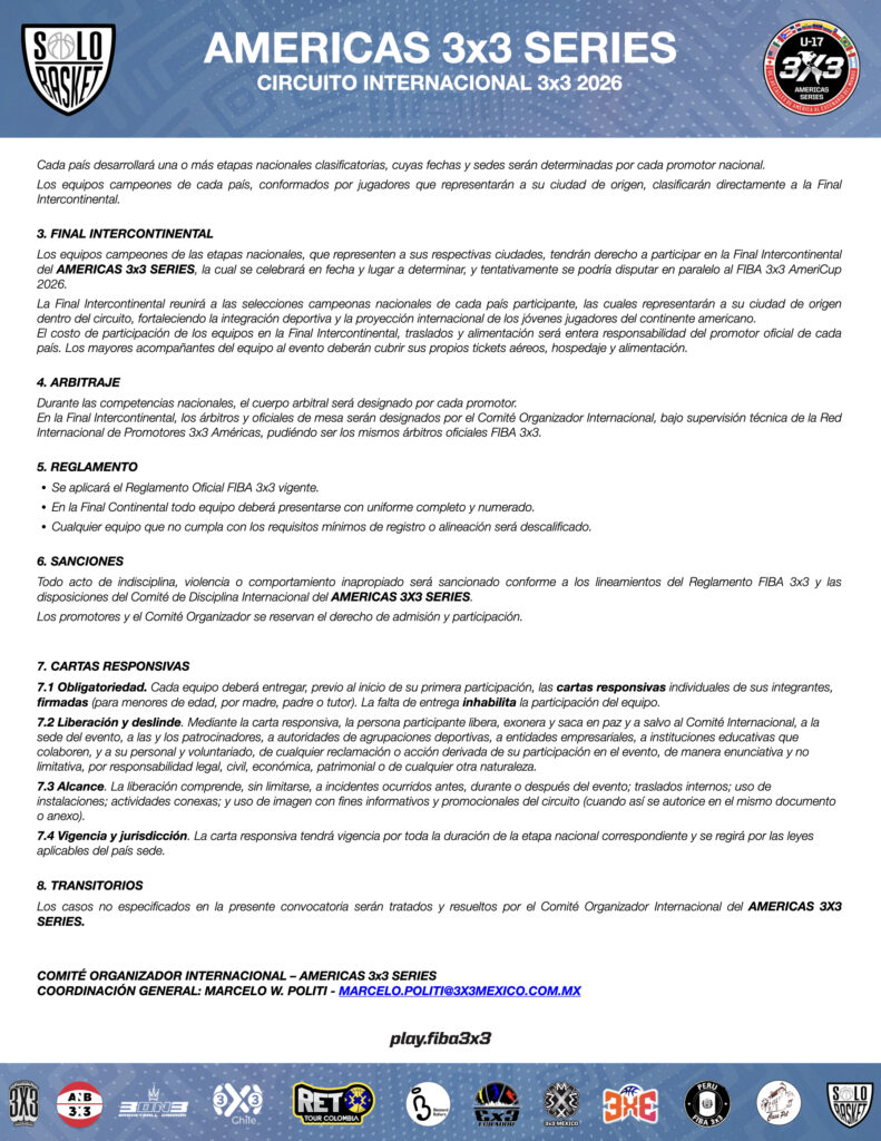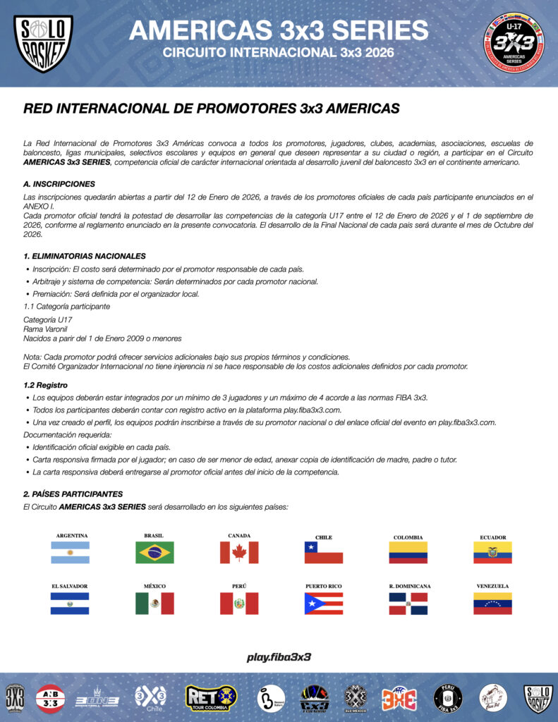 La Red Internacional de Promotores 3×3 Américas ha convocado formalmente a clubes, academias y selecciones para formar parte de este evento de carácter oficial. La competencia está dirigida a la Categoría U-17 (Rama Varonil), permitiendo la inscripción de atletas nacidos a partir del 1 de enero de 2009 o menores.